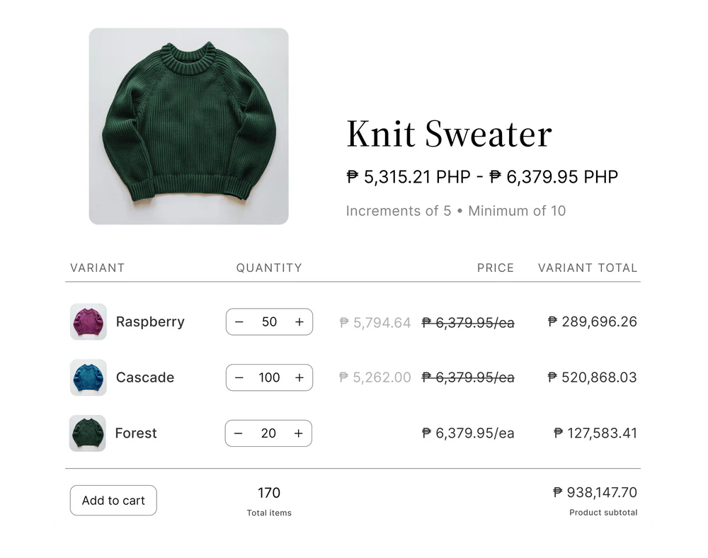 Create custom experiences for wholesale buyers with flexible pricing, discounts, and payment terms.